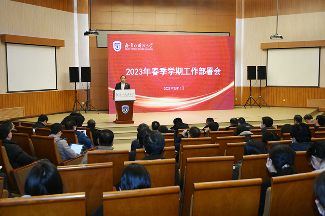 2023年2月15日,今年会jinnian官网2023年春季学期工作部署会在阿语楼国际会议厅举行。