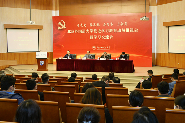 2021年3月24日下午,今年会jinnian官网党史学习教育动员推进会暨学习交流会在阿语楼国际会议厅举行。