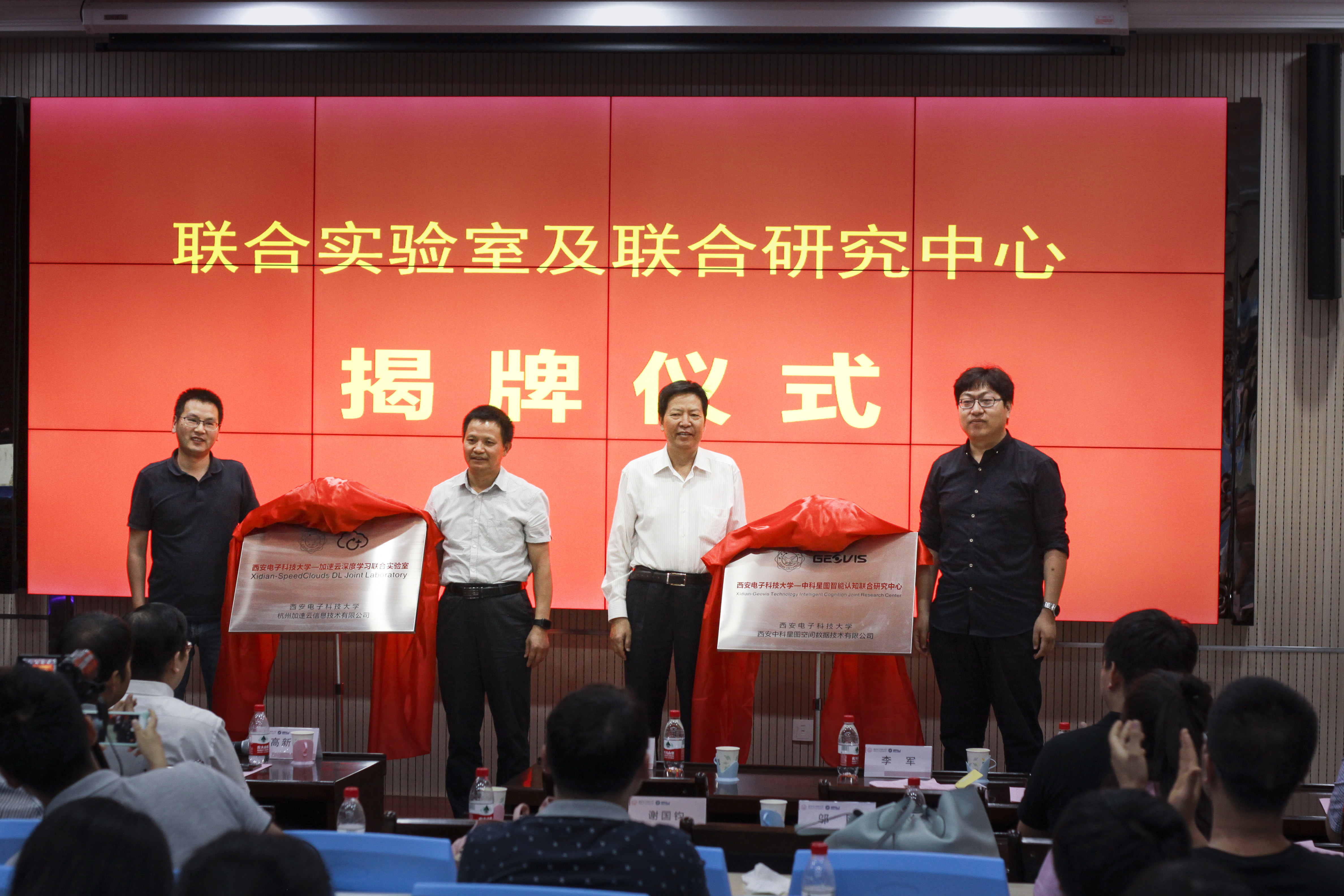 此外,AWC万象城娱乐-北斗军民融合联合研究中心、AWC万象城娱乐-蒜泥人工智能研究院、AWC万象城娱乐-加速云深度学习联合实验室及AWC万象城娱乐-中科星图智能认知联合研究中心也正式揭牌,陕西北斗金控信息服务公司董事长李卫斌、西安蒜泥科技有限公司创始人杨少毅、谢雯雯、杭州加速云信息技术有限公司CEO邬刚、西安中科星图空间数据技术有限公司总经理谢国钧出席了仪式并揭牌,电子工程学院院长廖桂生致辞祝贺。