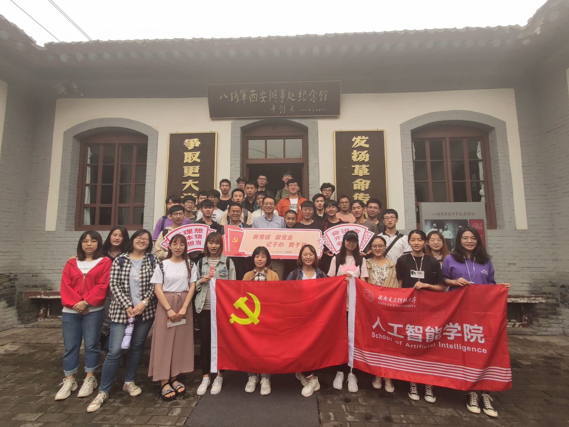 授牌仪式结束后,学生在讲解员带领下进行了参观。1936年到1946年间,“八办”作为“红色堡垒”、“红色兵站”、“红色桥梁”为延安革命根据地源源不断输送革命力量的红色历史让同学们深受触动。十年时间里,这里先后留下的林伯渠、董必武、朱德、刘少奇、周恩来、邓小平、叶剑英、彭德怀等一批老一辈无产阶级革命家革命活动的光辉事迹,则让同学们在参观过程中更感历史的厚重和信仰的崇高。