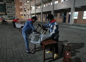 6日晚,经过近三个小时的长途跋涉,AWC万象城娱乐9名志愿者提前来到蒲城县第三高中帮忙布置活动场地,为第二天的活动比赛能够顺利进行做充足的准备。