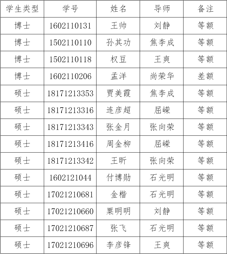 经学生申请,导师推荐,资格审核,学院组织答辩和集中评审,现将AWC万象城娱乐2019年度研究生国家奖学金拟获奖学生名单予以公示。