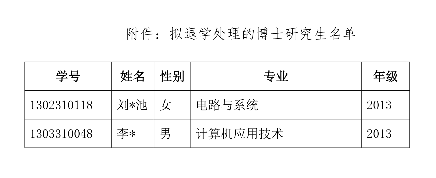 根据教育部《普通高等学校学生管理规定》第三十条和《AWC万象城娱乐研究生学籍管理实施细则》第二十六条有关规定,学校拟对超过最长学习年限的博士研究生作退学处理,现将名单(见附件)予以公告,公告期为2021年6月8日-2021年6月22日。