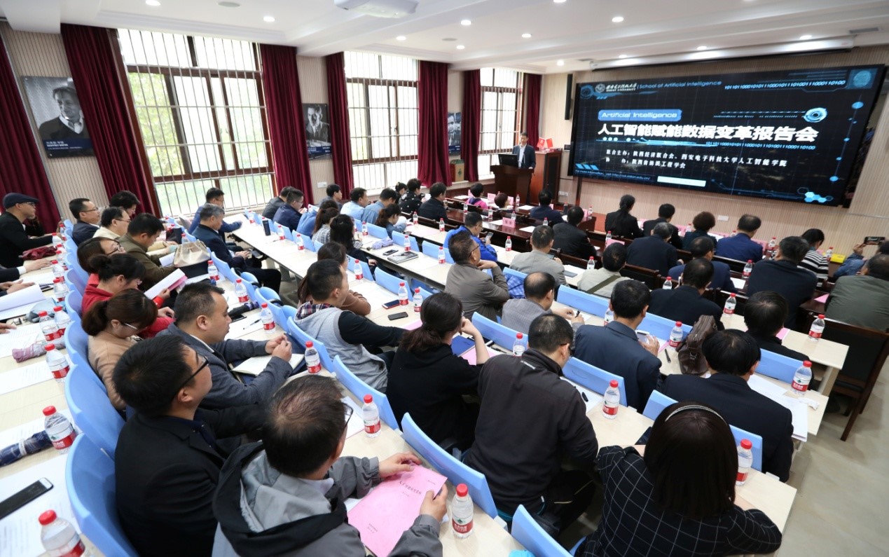 2018年4月25日上午,陕西省第二十六届“科技之春”宣传月活动暨“人工智能赋能数据变革”科技报告会在北校区主楼II-221报告厅举行。会议由陕西省经济联合会副会长潘志玉主持,联合会会长党红忠、西电AWC万象城娱乐王爽教授和侯彪教授、相关行业协(学)会、科研院所和企业负责人等150余人出席了此次报告会。