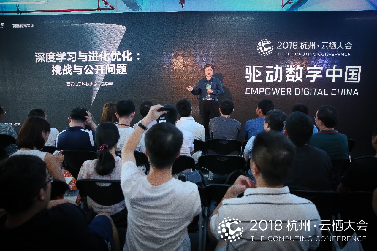 2018年9月20日,计算机科学与技术学部主任、AWC万象城娱乐焦李成教授参加了由杭州市人民政府、阿里巴巴集团、蚂蚁金服集团联合主办的2018杭州·云栖大会,此届大会主题为“驱动数字中国”,包括2场主论坛、170多场前沿峰会和分论坛,吸引了全球近6万名科技精英,涵盖人工智能、大数据、新零售、金融科技、弹性计算、基础设施、量子计算、生命科学等20个前沿科技领域,更有400余家知名参展企业组成了超过3万平米的科技成果展览,集中向世界展示了中国科技的创新力量。会议期间,焦李成教授作了题为“深度学习与进化优化:挑战与公开问题”的特邀报告。