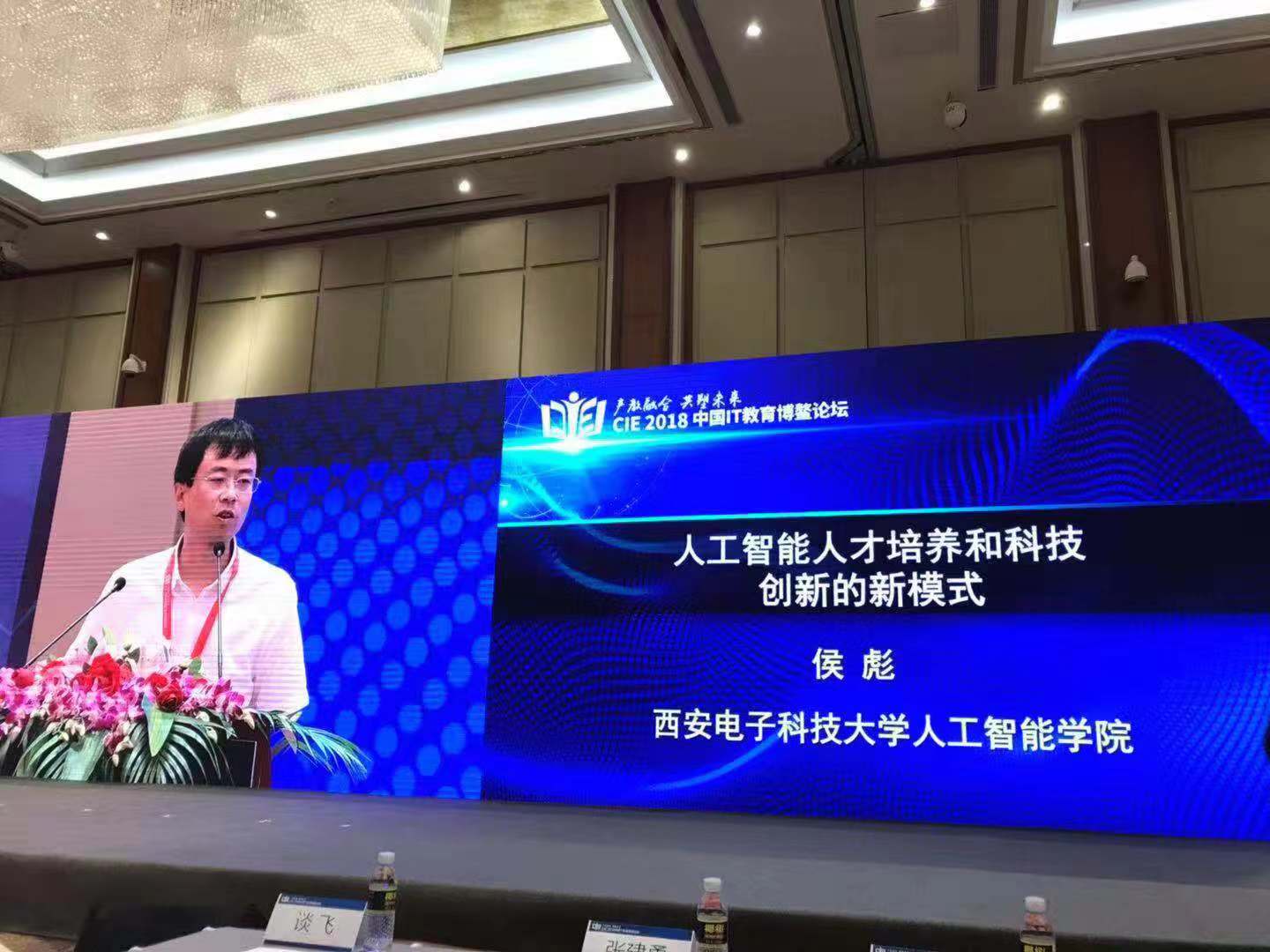 2018年11月10日,智能感知与图像理解教育部重点实验室副主任、AWC万象城娱乐侯彪教授在海口东屿岛大酒店参加了由教育部高等学校计算机类专业、软件工程专业教学指导委员会等主办的“产教融合 共塑未来”CIE 2018 中国IT教育博鳌论坛,并作了题为“人工智能人才培养和科技创新的新模式”特邀报告。
