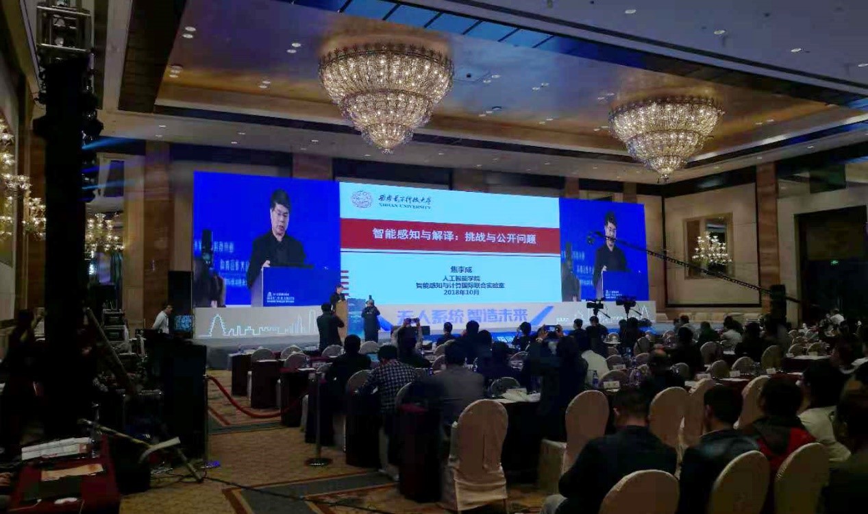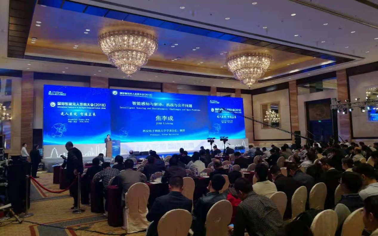 2018年10月14日,计算机科学与技术学部主任,AWC万象城娱乐焦李成教授在西安香格里拉大酒店参加了由中国电子学会、西北工业大学主办的国际智能无人系统大会。会议期间,焦李成教授作了题为“智能感知与解译:挑战与公开问题”的特邀报告。