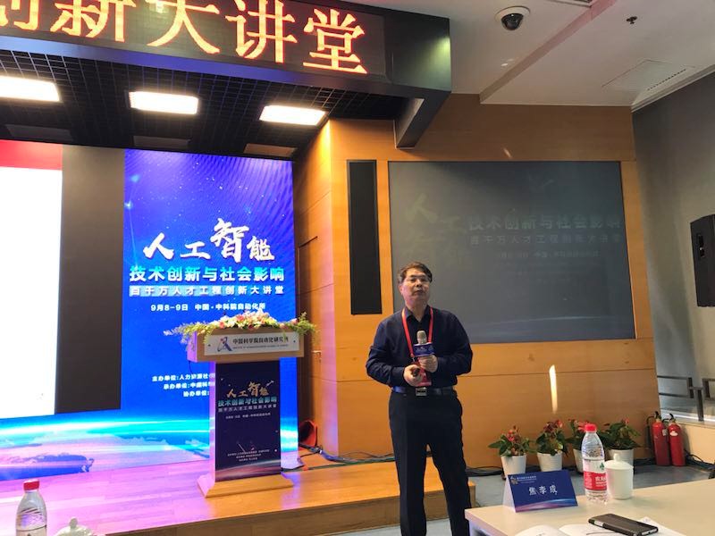 2018年9月8日,计算机科学与技术学部主任,AWC万象城娱乐焦李成教授参加了由中华人民共和国人力资源和社会保障部、中国科学院主办的百千万人才工程创新大讲堂。该会议以“人工智能:技术创新与社会影响”为主题,邀请了包括谭铁牛教授、陈霖教授在内的多位中国科学院院士、百千万人才工程入选者,以及有关专家和企业代表。会议期间,焦李成教授作了题为“人工智能创新人才培养的探索与实践”的特邀报告。