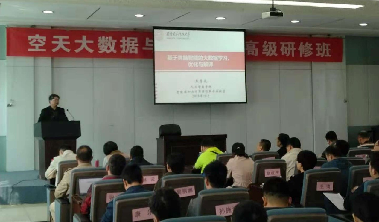 2018年10月15日,计算机科学与技术学部主任,AWC万象城娱乐焦李成教授在西北工业大学参加了由中国指挥控制学会、西北工业大学举办的2018空天大数据与人工智能高级研修班,焦李成教授针对“基于类脑智能的大数据学习、优化与解译”进行了授课。
