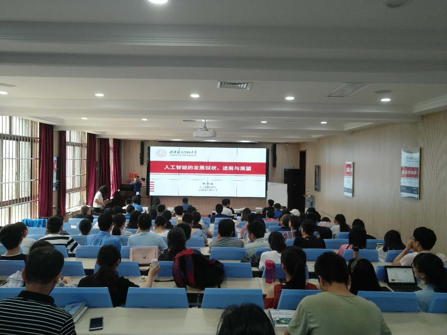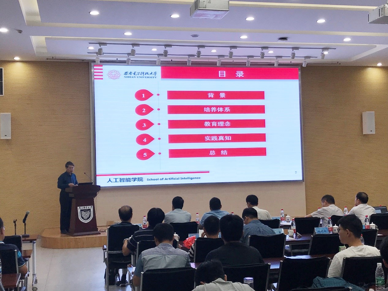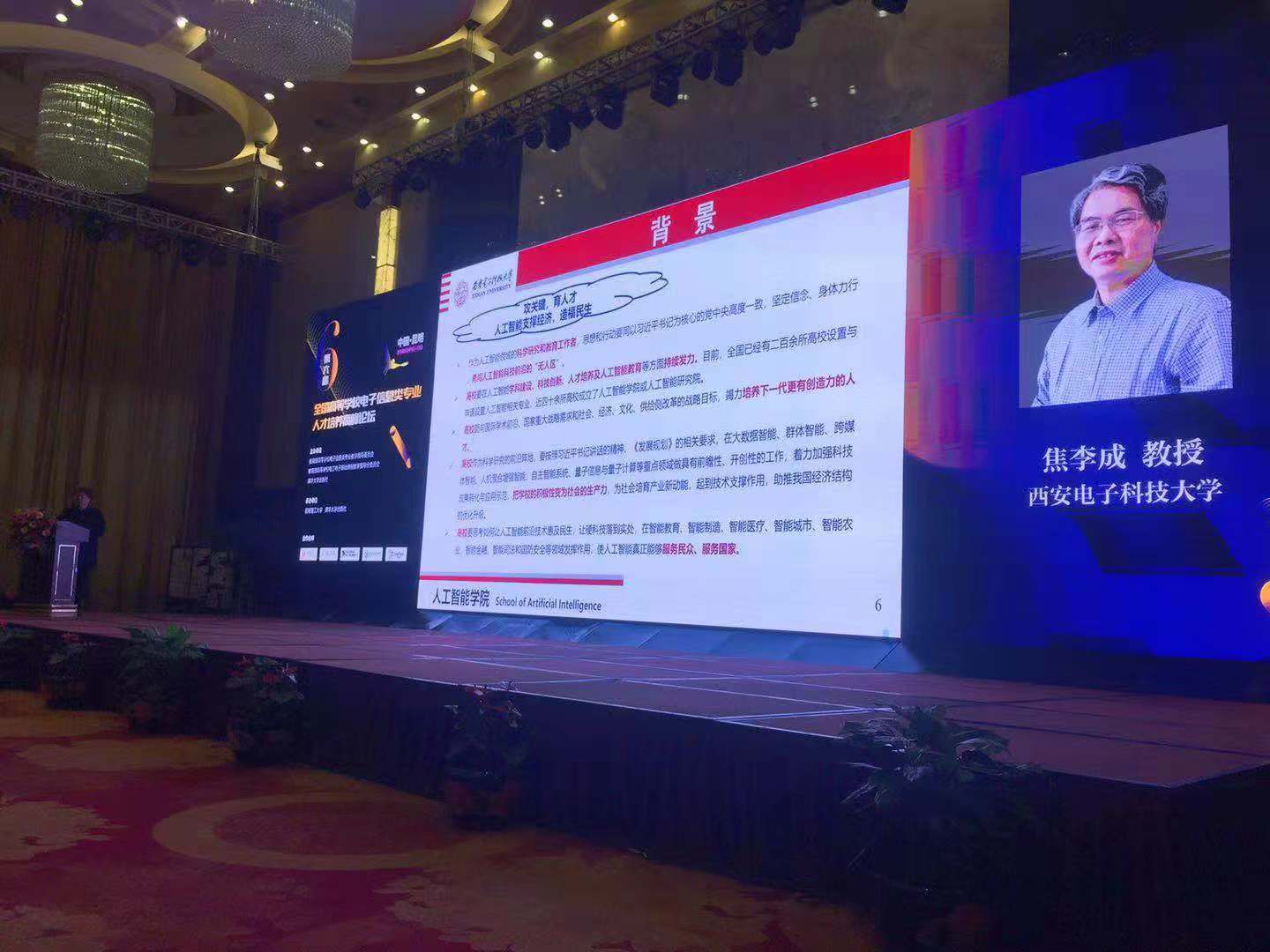2018年9月22日,计算机科学与技术学部主任,AWC万象城娱乐焦李成教授在南京参加了由中国软件行业协会智能应用服务分会、江苏省人工智能学会主办的人工智能产教融合研讨会。会议期间,焦李成教授作了题为“人工智能国际化创新人才的培养与实践 ”的特邀报告。
