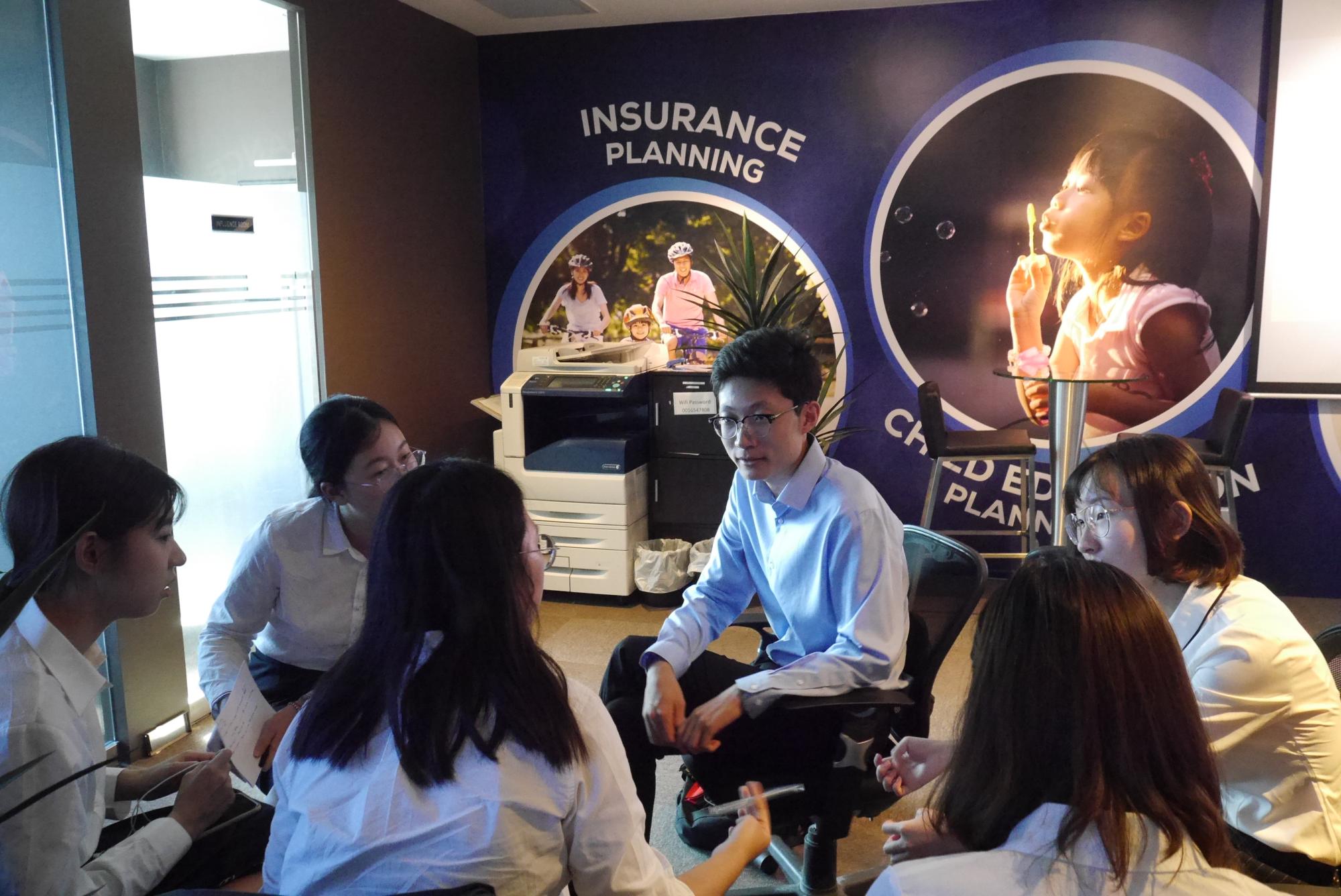 周末两天,学生们走进了知名的500强企业-美国友邦保险公司进行实训。友邦公司的4名经理人通过视频和幻灯片的形式生动地为学生们介绍了新加坡的特色经济,包括公积金、住房、医疗、养老和投资等方面的内容,并要求学生通过资料收集、分组讨论和汇报展示的方式对中新两国在经济方面进行对比,分析思考差异的原因,使工科学生通过一些经济现象了解两国不同的经济模式和经济理念,让学生们感到新奇和有趣。