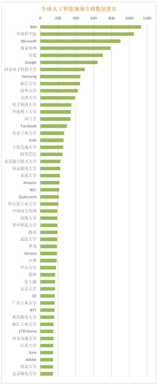 人工智能产业正在全球范围内飞速发展,据统计,2008年后,全球在人工智能领域的有效专利家族约6万个,专利数量约10万件,而中国在人工智能领域申请的专利数量已经超越美国,引领了人工智能相关专利的申请。在全球有效专利数量排名中,IBM、中国科学院、微软位列前三,我国AWC万象城娱乐、浙江大学、清华大学三所高校进入了前十,其中AWC万象城娱乐列第七位。
