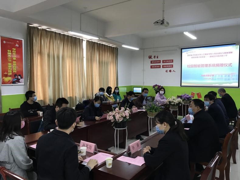在疫情防控关键阶段、学生全面复学返校之际,西电结合自身专业优势,将研发出的该套校园智能管理系统捐赠给蒲城孙镇洞坡小学,希望通过科技的力量,服务地方做好开学疫情防控以及安全管理工作,用科技为蒲城县孙镇洞坡小学撑起无形的保护伞。