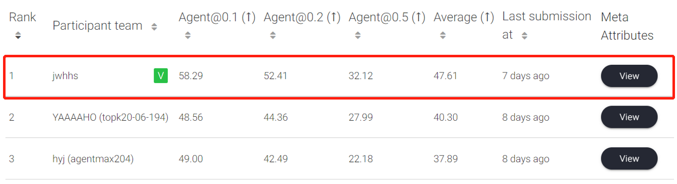 目标检测赛道最终排行榜(冠军、亚军)