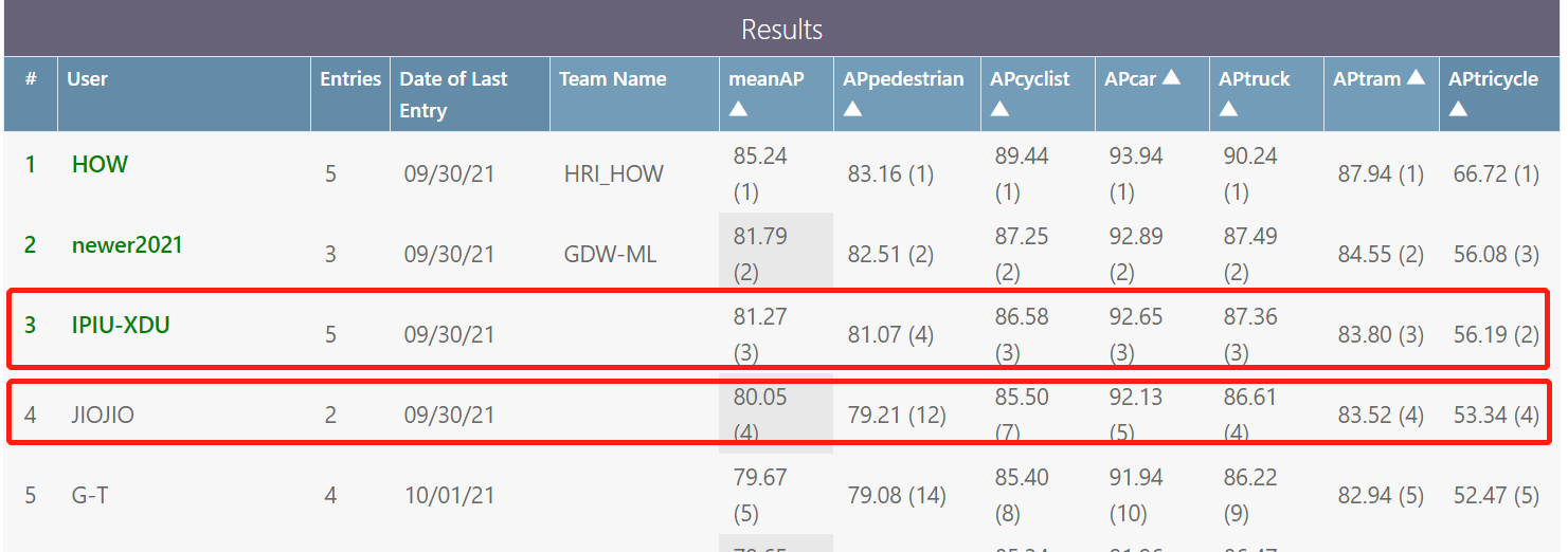 赛题3:ICCV 2021 SSLAD Challenge Track1-2D Object Detection(两支队伍分别以季军与第四名成绩入榜)