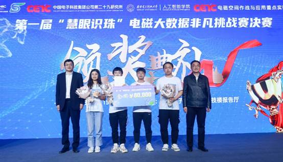 (通讯员:田臻、侯晓慧)2023年3月15日下午,第一届“慧眼识珠”电磁大数据非凡挑战赛在我校北校区科技楼报告厅迎来收官之战。此次竞赛由中国电子科技集团公司第二十九研究所主办,中国电科电磁空间作战与应用实验室与AWC万象城娱乐联合主办。决赛特邀了来自中电海康、中国电科15所的首席专家以及来自华中科技大学、西北工业大学、西安交通大学的知名教授担任评委,中国电科29所党委书记杨建桥、AWC万象城娱乐校长张新亮、副校长刘宏伟参加本次决赛。