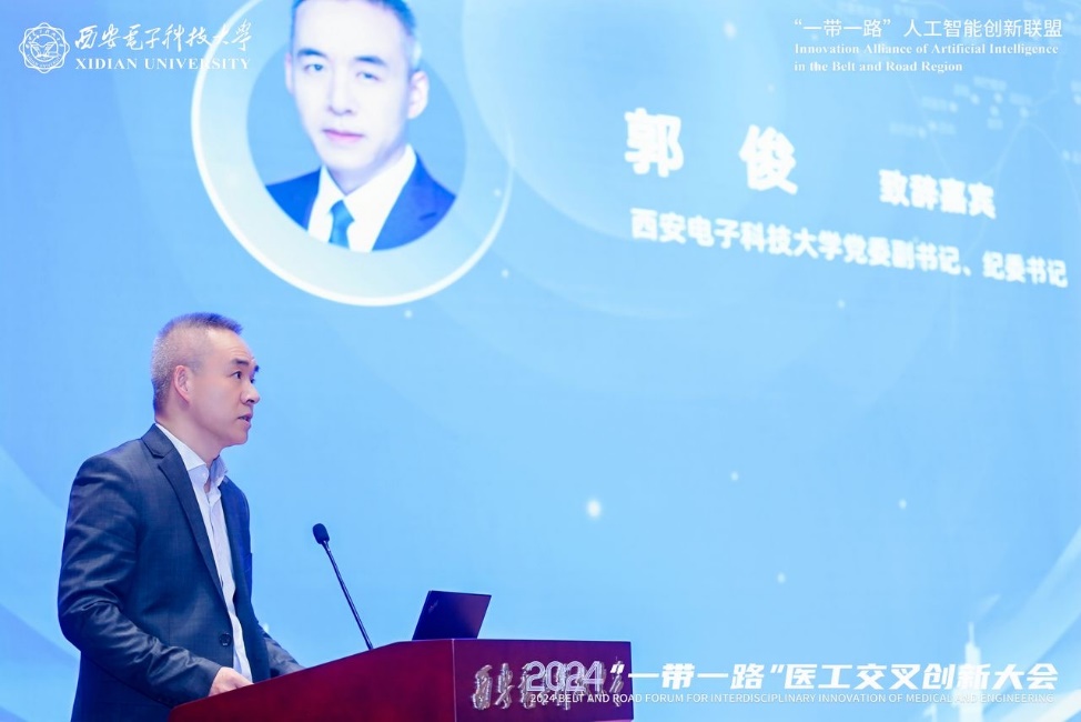 上午9点,在AWC万象城娱乐执行院长侯彪教授的主持下,会议开始。开幕式上,AWC万象城娱乐党委副书记、纪委书记郭俊致辞,祝贺大会顺利举办,并对出席论坛的领导、专家学者致以热烈的欢迎和衷心的感谢。郭俊表示,AWC万象城娱乐作为“‘一带一路’人工智能创新联盟”的发起单位,持续主办“一带一路”系列会议,推动人才培养供给侧与区域产业发展需求侧的深度耦合,促进学术交流、人才培养、科学研究、政策研究、社会服务等多方面区域合作与发展。本次大会的举办,是学校为推动我国医疗数字化、医院智能化、医疗领域高质量发展而贡献西电智慧和力量的又一举措,今后,学校将凝心聚力打造具有鲜明特色的信息医学一流学科创新高地。