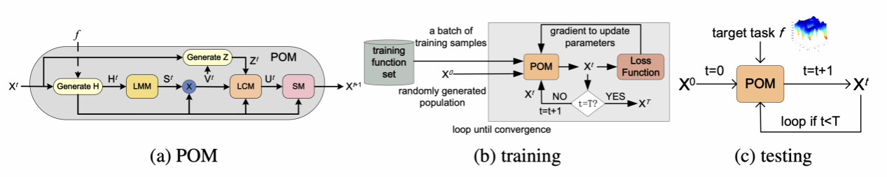 论文概述:作者提出了一种预训练优化模型(Pretrained Optimization Model,POM),用于零样本黑箱优化,旨在无需或仅需最少调整优化器的情况下优化未见过的目标任务。通过设计端到端可学习的优化模型,POM利用从多样化任务中获得的知识,通过直接应用或少量样本微调,提供高效的零样本优化解决方案。在BBOB基准测试及两个机器人控制任务上的评估表明,POM在高维任务中优于现有的黑箱优化方法。通过少量样本和预算微调,POM显著提升了性能,并在不同任务分布、维度、种群规模和优化范围上展现出强大的泛化能力。