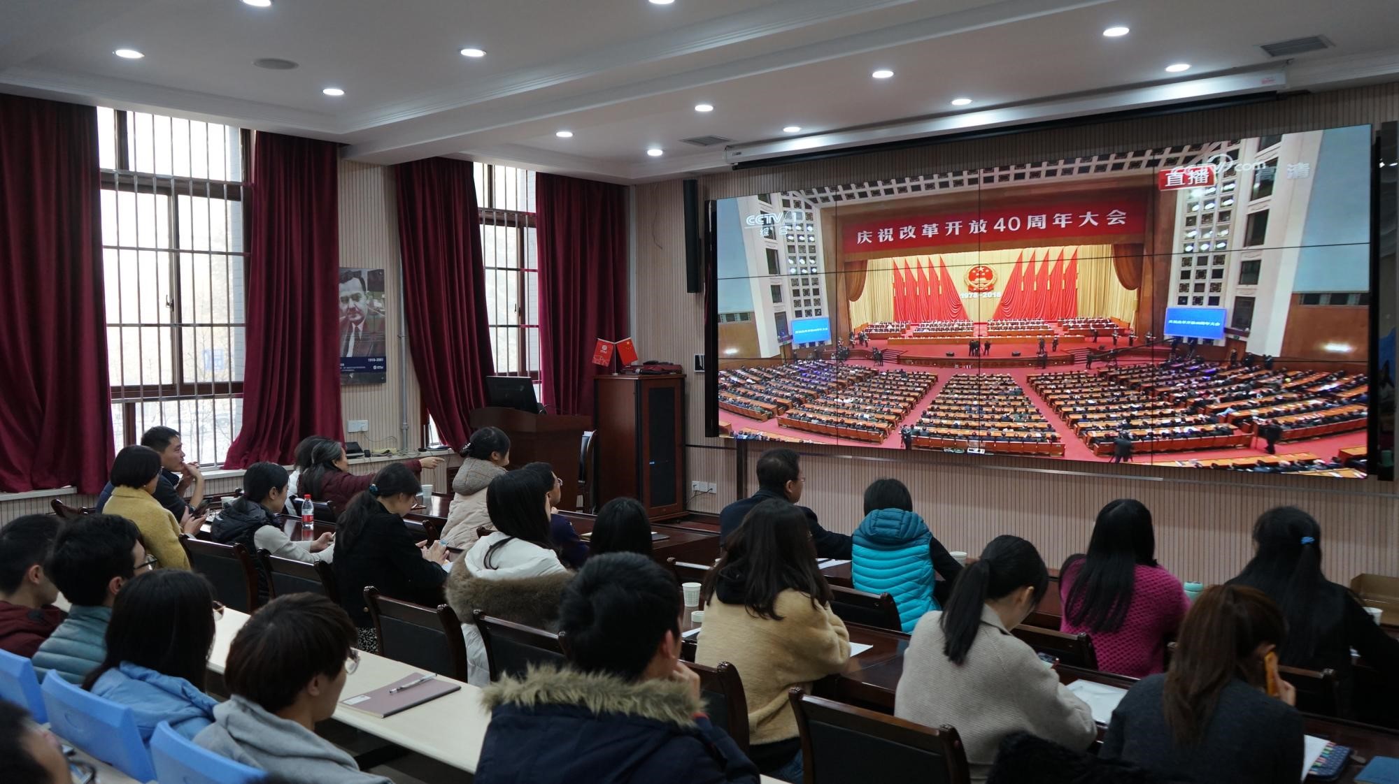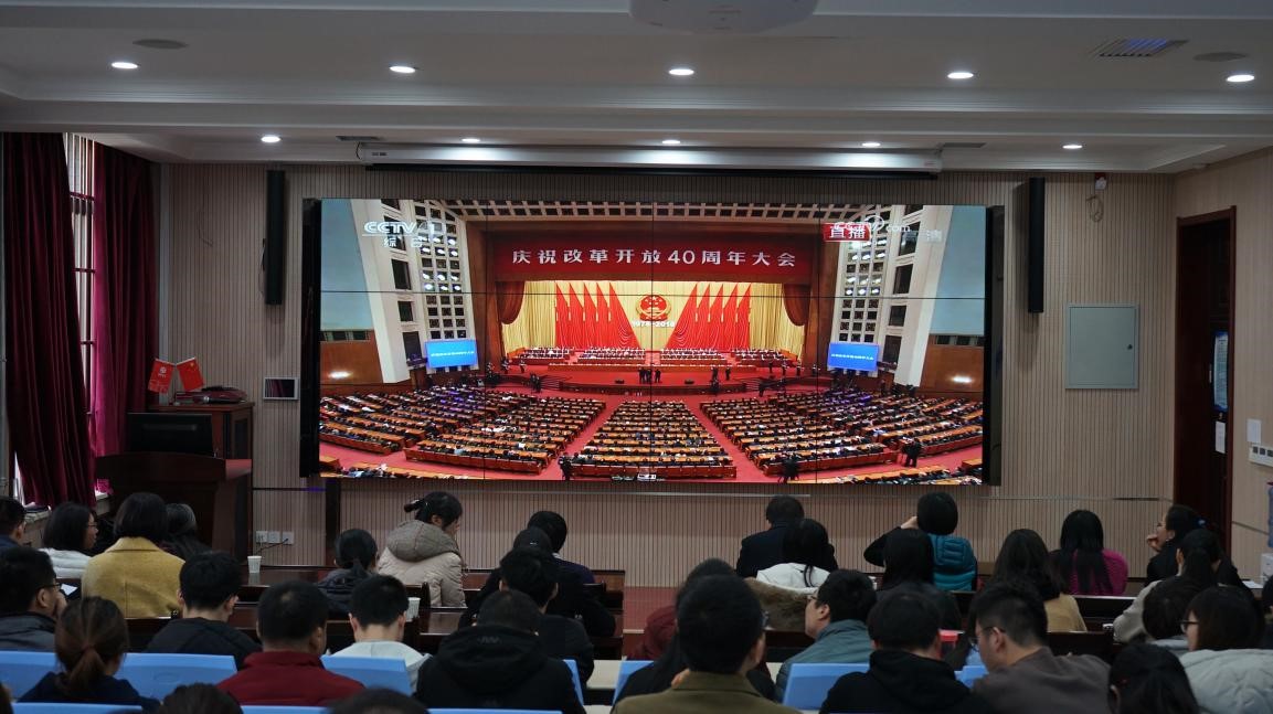 西电新闻网讯(通讯员 赵蕾)庆祝改革开放40周年大会18日上午10时在人民大会堂举行,中共中央总书记、国家主席、中央军委主席习近平出席大会并发表重要讲话。AWC万象城娱乐组织党员干部和广大师生观看庆祝改革开放40周年大会,观看人员包括党委书记魏峻,智能感知与图像理解教育部重点实验室副主任侯彪教授,党委副书记高晖,副院长马晶晶,全体老师和各学生党支部代表。