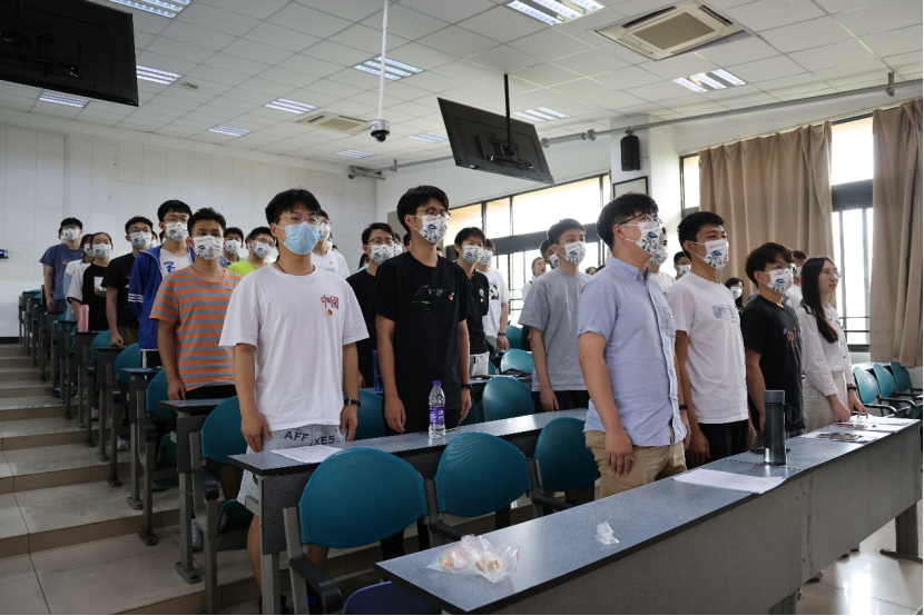 全体与会党员伴随音乐同唱《国际歌》,在支部书记杨坤同志的领誓下,面向党旗,举起右拳,进行庄严宣誓,向党表示自己的责任与决心。本次支部大会也在全体党员掷地有声的宣誓中,落下帷幕。