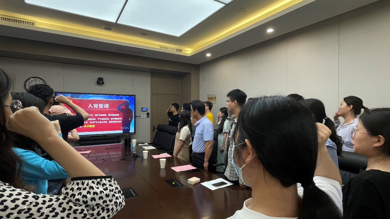 随后,高晖为毕业生党员代表发放党员政治初心卡,希望毕业生党员能够不忘初心、牢记使命,在未来的学习和工作中继续秉承全心全意为人民服务的宗旨,并由毕业生党员代表刘金生同志带领大家重温入党誓词。