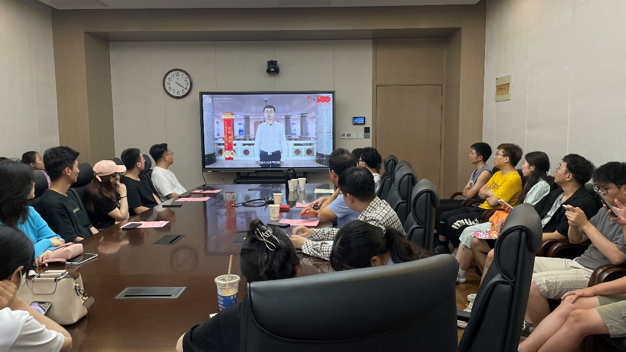 最后,在认真听取毕业生党员发言后,高晖以“感党恩、共成长、话未来”为主题,与研究生毕业生党员进行共勉。他首先代表学院向2023届研究生毕业生党员致以美好祝愿和殷切厚望,希望大家要时时处处牢记自己的党员身份,要坚定理想信念,自觉增强党性修养,不断加强政治理论学习。他强调,正如习近平总书记深情寄语新时代青年“青春由磨砺而出彩,人生因奋斗而升华”,希望在未来的工作岗位和求学深造中毕业生党员要继续发挥好党员先锋模范作用,勇做新时代的“排头兵”,在奋斗中书写精彩人生华章。